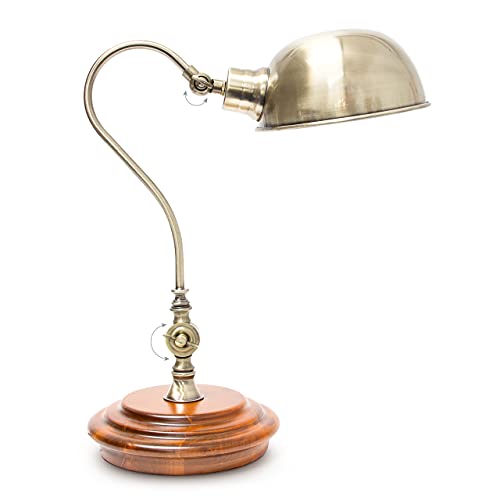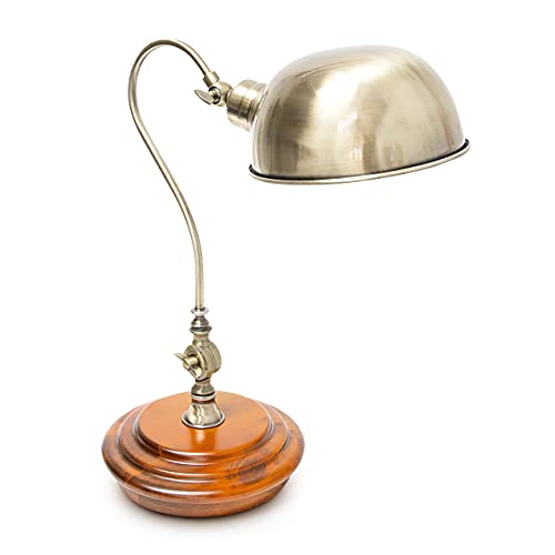 Relaxdays Lampada da Tavolo in Design Steampunk, Luce da Scrivania in Legno e Ferro, HxLxP: 19 x 34 x 43 cm, Ottone E27, 40 W, 1 pz