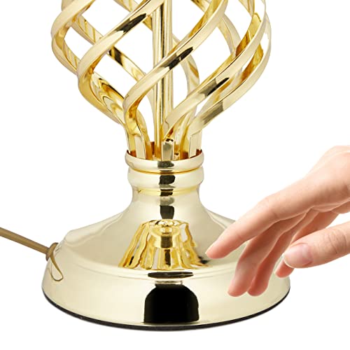 Relaxdays Lampada da Tavolo con Funzione Touch, Abat Jour dal Design Moderno, HxD: 43,5 x 25 cm, E14, Dorato Bianco