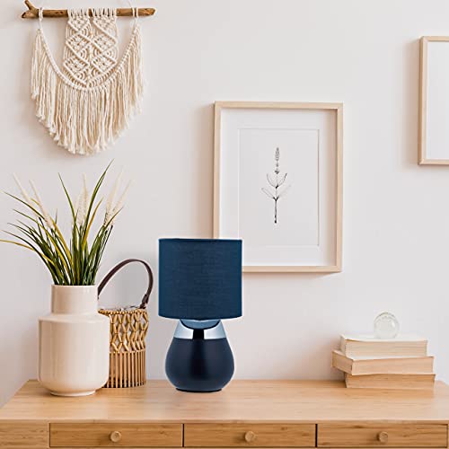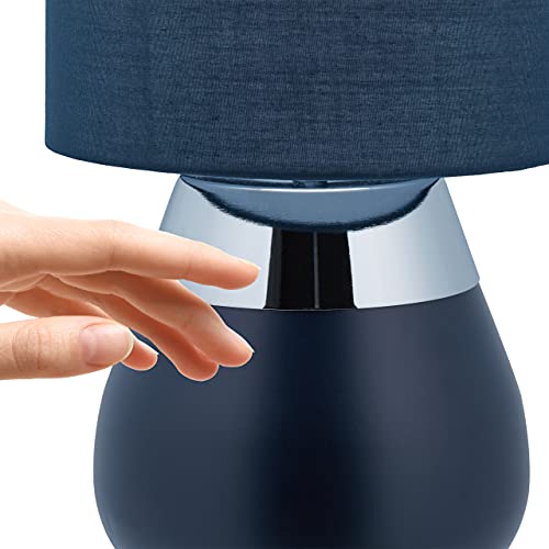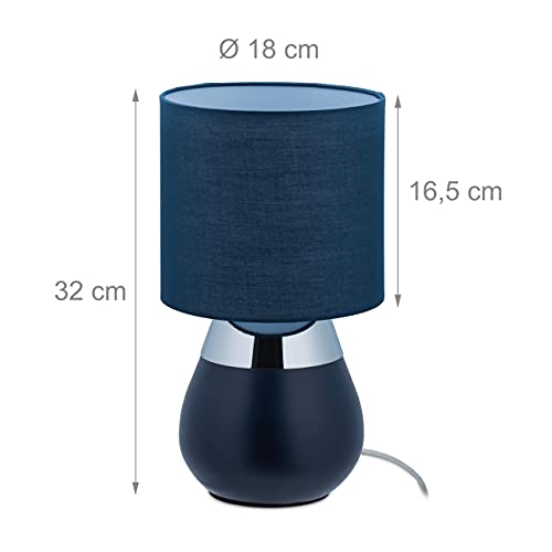 Relaxdays Lampada da Tavolo, Luce Indiretta con Funzione Touch, Abat Jour con Paralume, H x D: 32 x 18 cm, Blu Scuro