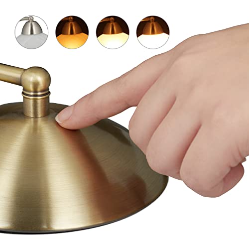 Relaxdays Lampada da Tavolo Vintage, Funzione Touch, Vetro & Ferro, Regolabile, E14, 230V, 25x15x19 cm, Oro