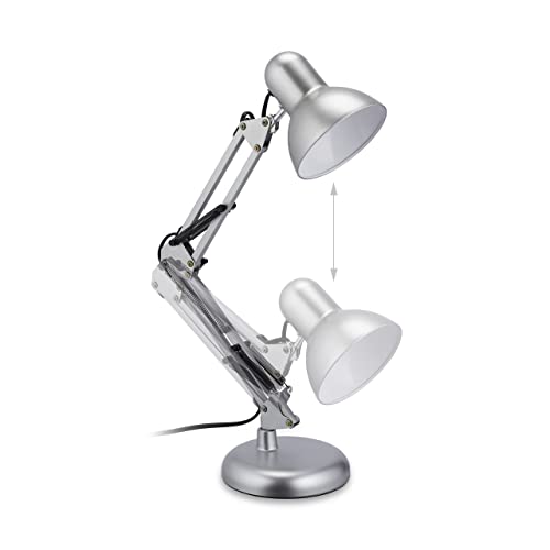 Relaxdays Lampada da Tavolo Vintage, Abat Jour con Paralume Inclinabile, E27, Luce Ufficio e Studio, in Metallo, Argento