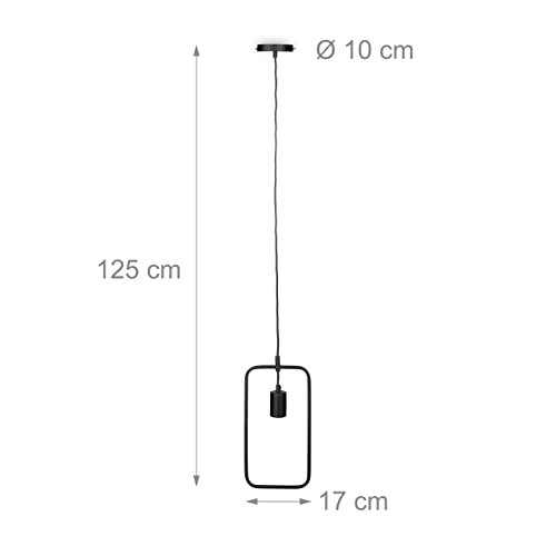 Relaxdays Lampadario Lampada Sospensione Moderno KONTUR Design rettangolo Contorno Metallo per Tavolo da Pranzo HxLxP 125x17x4,5 cm E27, 40 W, Nero, Rettangolare