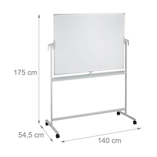 Relaxdays Lavagna Magnetica con Cavalletto, Whiteboard Girevole a 360°, Scrivibile su Entrambi i Lati, 90x120 cm, Bianca, 1 pz