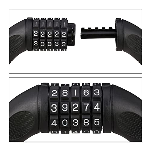 Relaxdays Lucchetto a Combinazione per Bicicletta, Catenaccio Sicurezza con Codice a 5 Cifre, in Acciaio, 120 cm, Rosso