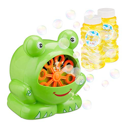 Relaxdays Macchina Sparabolle di Sapone a Forma di Rana, per i Compleanni dei Bambini e Matrimoni, Colore Verde, 10024943