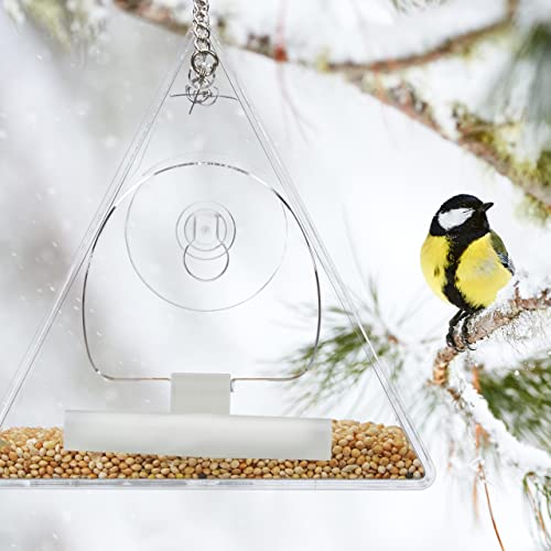 Relaxdays Mangiatoia per uccelli in acrilico da appendere per finestre, 13 x 12,5 x 7,5 cm, trasparente
