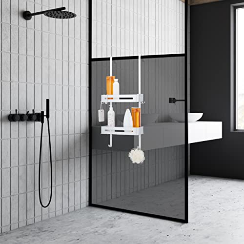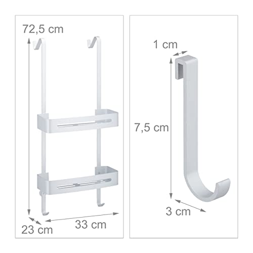 Relaxdays Mensola Portaoggetti da Doccia da Appendere, 2 Cesti, 8 Ganci, in Alluminio, Porta Shampoo e Sapone, Argentato, 100%