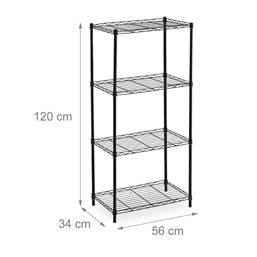 Relaxdays Metallo Scaffali in Ferro, Cucina, Bagno e Altro, 4 Ripiani, HxLxP 120 x 56 x 34 cm, 30 kg Carico, Nero