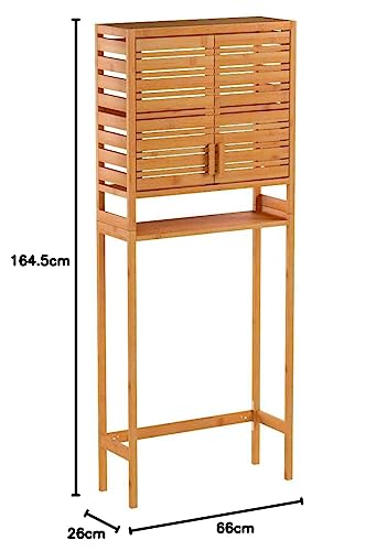 Relaxdays Mobile per Lavatrice, Autoportante, Ante in Lamelle, 3 Ripiani, Mobiletto sopra WC, bambù, Marrone Chiaro, 164.5 x 66 x 26 cm