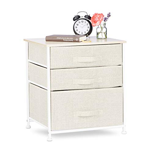 Relaxdays Mobiletto con 3 Cassetti, Mobile Cassettiera, in Tessuto, Acciaio e Legno MDF, HxLxP: 53 x 48 x 40 cm, Beige