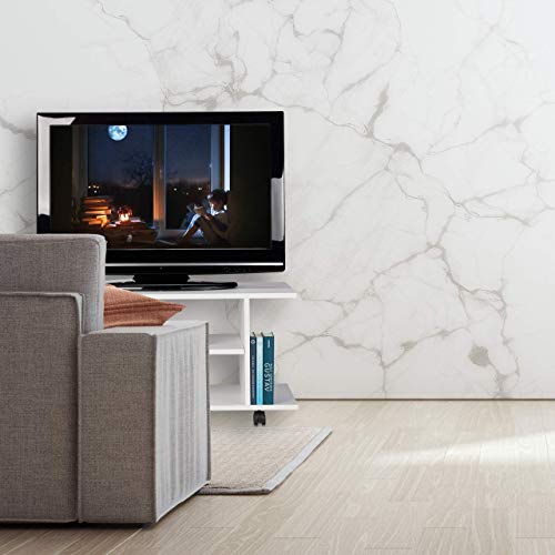Relaxdays Mobiletto Porta TV con Ruote, 4 Ripiani Aperti, per Apparecchi Elettronici, CDs, DVDs, HLP 40x80x40, Bianco, Truciolato, plastica