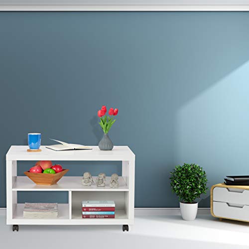 Relaxdays Mobiletto Porta Tv, Con Ruote, 3 Scomparti Per Dvd & Apparecchi Elettronici, Stabile, 40 x 80 x 50 cm, Bianco