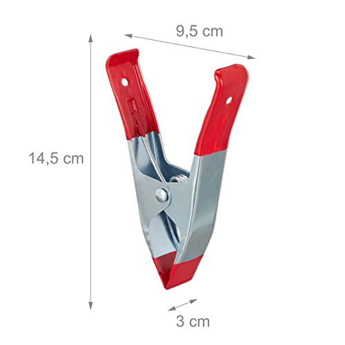 Relaxdays Morsetti a Molla in Metallo, Set da 6 Maxi Pinze con 50 mm di Apertura, Mollette per Foto & Bricolage, Rosso
