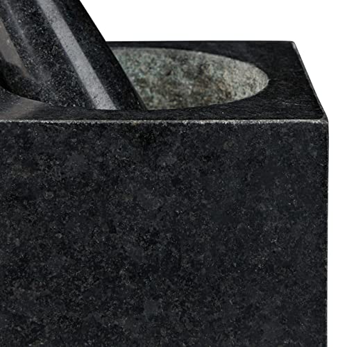 Relaxdays Mortaio, Mortaio & Pestello in Granito, Robusto & Resistente, Erbe Aromatiche, Quadrato, V 250 ml, 9,5x11x11cm, Grigio