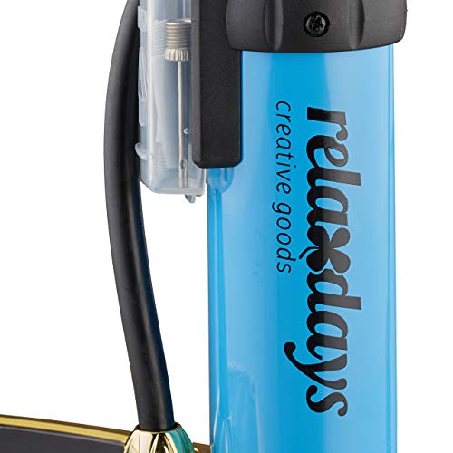 Relaxdays nanometro, Pompa a Pedale con Manometro, Universale, 3 Adattatori, 10 Bar di Pressione, Palloni, 18,5 x 14 x 9,5 cm, Blu Unisex Adulto, Set da 1