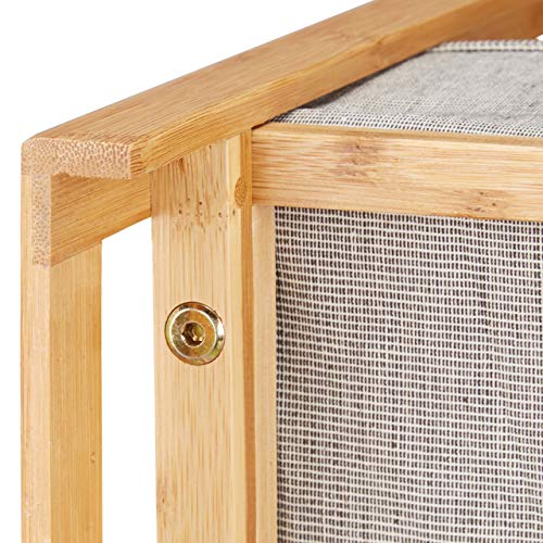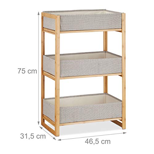 Relaxdays Naturale Scaffale Bagno, con 3 Cestini Portaoggetti Pieghevoli, Mobiletto in bambù HLP: 75x46,5x31,5, Grigio, Poliestere, Cotone, 75 x 46,5 x 31,5 cm