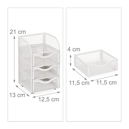 Relaxdays Organizer Portaoggetti da Scrivania, 3 Cassetti, per Cancelleria Ufficio, Acciaio, HLP: 21x12,5x13 cm, Bianco