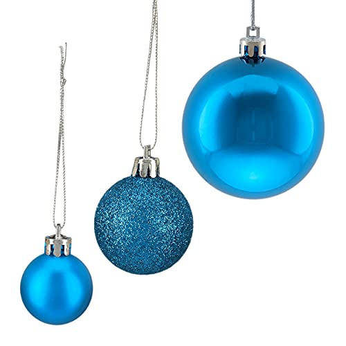 Relaxdays Palline di Natale, Set da 100, Addobbi Natalizi, Opache, Lucide, Glitterate, ∅ 3,4 e 6 cm, Deco, Blu-Petrolio
