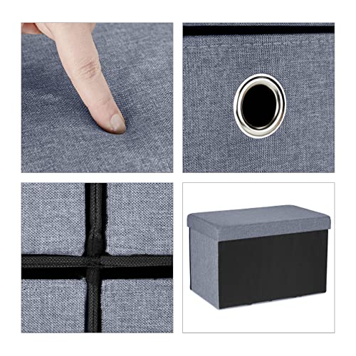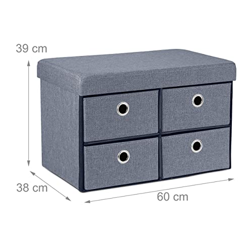 Relaxdays Panca Contenitore con 4 Cassetti, Pieghevole, Ingresso o Camera Letto, HLP: 39x60x38 cm, Porta Giochi, Grigio, 70% fibra di legno 20% poliestere 10% gommapiuma, 1 pz