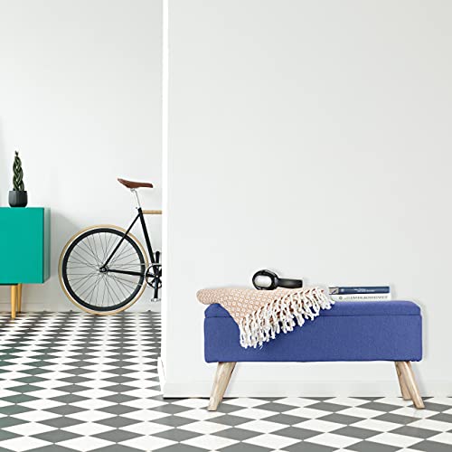 Relaxdays Panca con Contenitore, Imbottita, Gambe in Legno, Cassapanca Foderata, HLP, 5x79,5x39,5 cm, Blu, 50% Fibra 30% 20% Poliestere, 39,5 x 79,5 x 39,5 cm