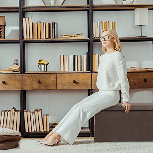 Relaxdays Panca Contenitore, Seduta Imbottita, 80 Litri, Pouf Cassapanca per Corridoio e Salotto, 38x77x39 cm, Marrone, 60% Fibra 30% Velluto 10% gommapiuma
