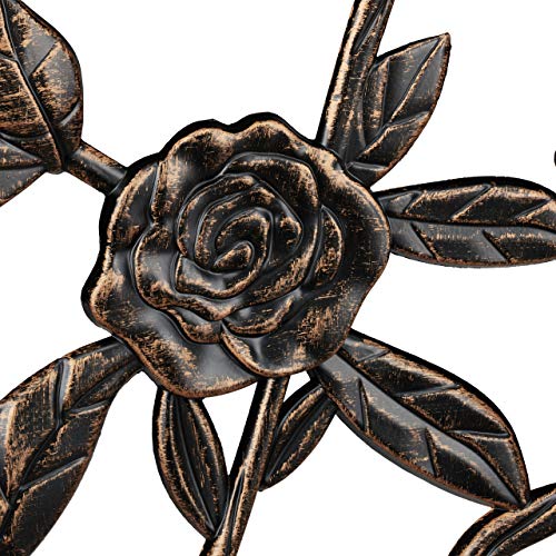Relaxdays Panca da Giardino, per 2 Persone, Rose Decorative, Terrazzo Balcone, in Alluminio e Ghisa, 78x99x52 cm, Bronzo, colata, Gartenbank Antik Rosen Schwarz