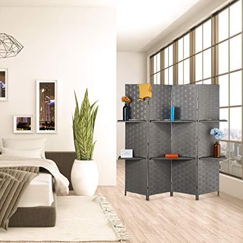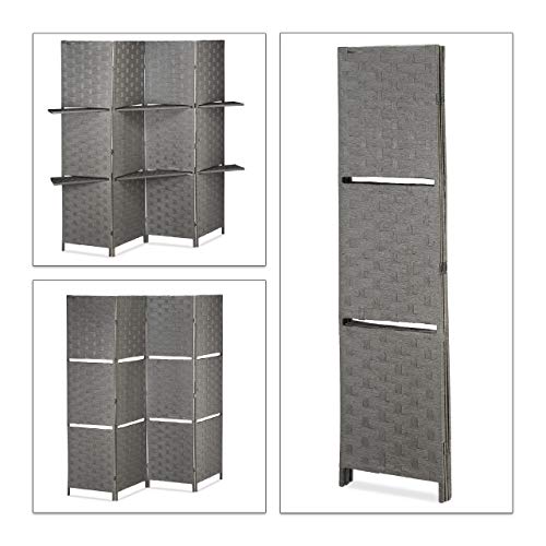 Relaxdays Paravento a 4 Ante, Divisore Interno, Pieghevole, con 2 Ripiani, in Carta, HxLxP 180 x 170 x 39 cm ca., Grigio