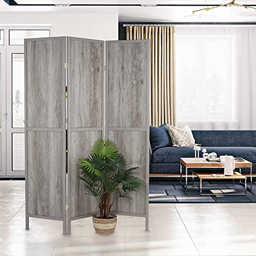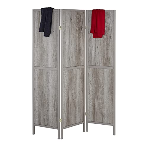 Relaxdays Paravento in Legno e MDF, 3 Ante, Autoportante, Pieghevole e Salvaspazio, Divisorio, HXL: 176x132cm, Grigio