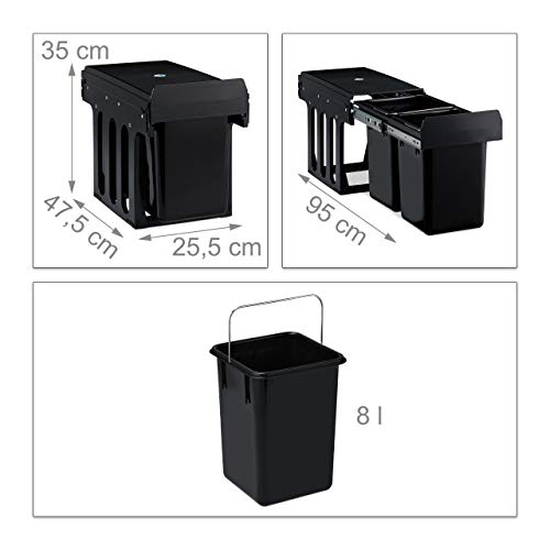 Relaxdays Pattumiera Estraibile con 2 Secchi, Bidoni Raccolta Differenziata Sotto Lavello, 2x 8 l, 35x25,5x47,5 cm, nero