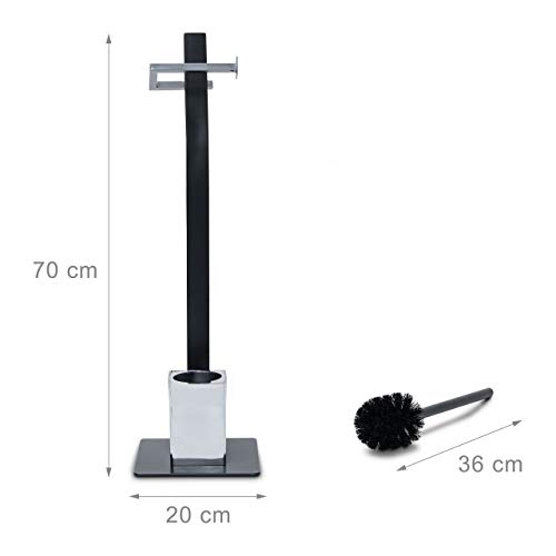 Relaxdays Piantana da Bagno GRAO, Portarotolo e Portascopino, Accessorio Autoportante Multiuso WC, Antracite Nero, Acciaio Inossidabile, 20 x 70 cm