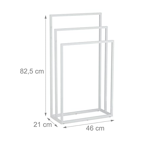 Relaxdays Piantana Portasciugamani, Autoportante con 3 Bracci, Acciaio, Appendi Asciugamani 82,5 x 46 x 21 cm, Bianco, Lega