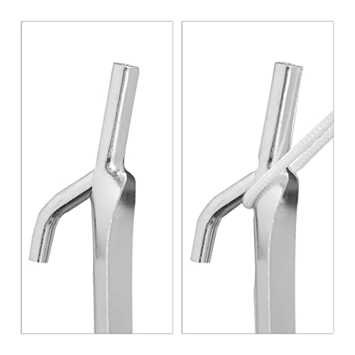 Relaxdays Set da 12 Picchetti da Tenda, Pioli Ancoraggio su Terreni Duri, Acciaio Zincato, con Ganci, L: 30 cm, Argento, 12 pz