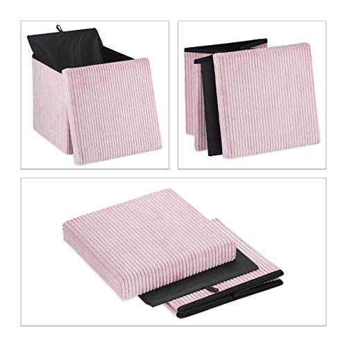 Relaxdays Pouf, Pieghevole, Sgabello Imbottito con Contenitore, Quadrato, con Coperchio, HxLxP: 38 x 38 x 38 cm, Pannelli MDF, Velluto, gommapiuma, Colore: Rosa, 1 pz