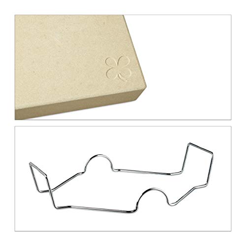 Relaxdays Pietra Refrattaria, Set con Pala per Pizza, in Legno, Cordierite, 5cm Spessore, Rettangolare, Color naturale