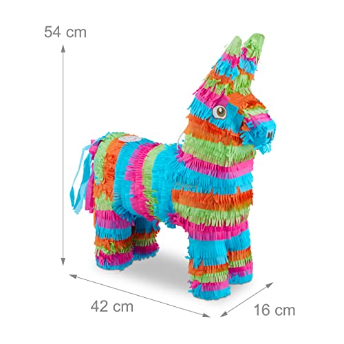 Relaxdays Pignatta Asinello, Pentolaccia a Forma di Animale da Riempire, per Bambini, Party & Compleanni, Colorata