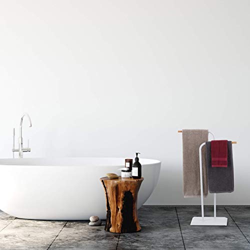 Relaxdays Porta Asciugamani da Terra, Piantana a 2 Bracci, Doppio, in Acciaio e Legno, HxBxT 90 x 56 x 20 cm, Bianco
