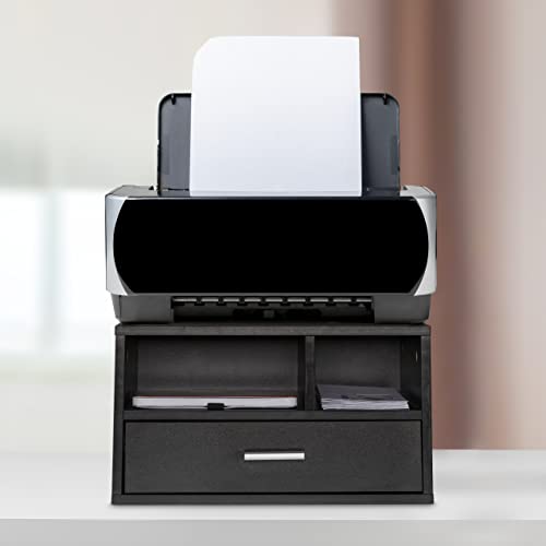 Relaxdays 1x Porta Stampante da Scrivania, Supporto 3 Scomparti, con Cassetto, Portadocumenti, 22x40x30 cm, Organizer, Nero