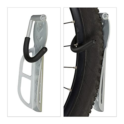 Relaxdays Portabici da Muro, Set da 2 Ganci da Parete per Bici, Regge Max. 25 kg, per Garage, Supporto Verticale, Grigio, 80% Ferro 20% plastica