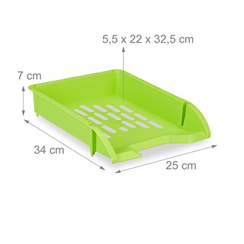 Relaxdays Portadocumenti a Incastro, per Fogli in Formato A4, Ufficio, Set 10 Contenitori di Plastica, Verde, HxLxP: 7 x 25 x 34 cm