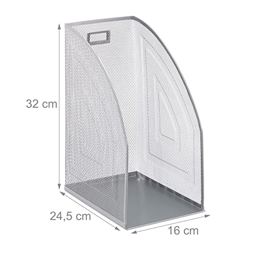 Relaxdays Portadocumenti Verticale in Metallo, Formato A4, Organizer Extra Largo Ufficio, 32 x 16 x 24,5 cm, Argento, 1 pz