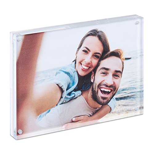 Relaxdays Portafoto in Acrilico, Senza Cornice, Magnetico, per 2 Fotografie, Espositore Foto, Trasparente, 100% plastica, HxL: 13 x 18 cm