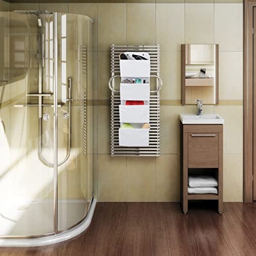 Relaxdays Portaoggetti da Parete, 4 Scomparti, Organizer da Porta con Ganci, Salvaspazio per Bagno e Ufficio, Bianco, 60% Tessuto Non Tessuto, 1 pz