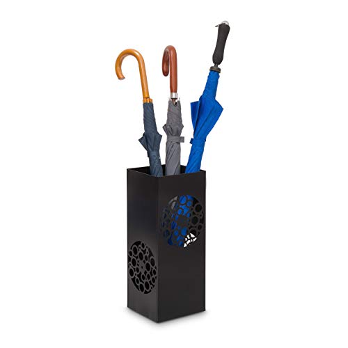 Relaxdays Portaombrelli, Contenitore Supporto Ombrelli con Vaschetta Raccogli-Acqua, HLP 49,5 x 22,5 x 22,5 cm, Nero, Acciaio, Set da 1 pz