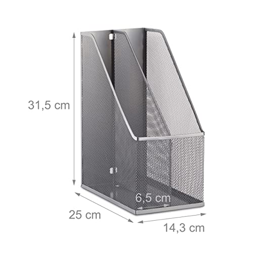 Relaxdays Portariviste Scrivania, Organizer 2 Scomparti, Metallo Forato, Raccoglitore Documenti Ufficio, A4-C4, Argento