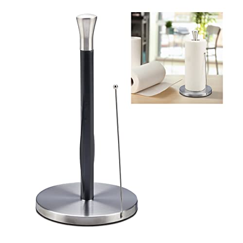 Relaxdays Portarotolo da Cucina Verticale, in Acciaio, Porta Carta Assorbente, 33 x 17 cm, Supporto da Tavolo, Argento