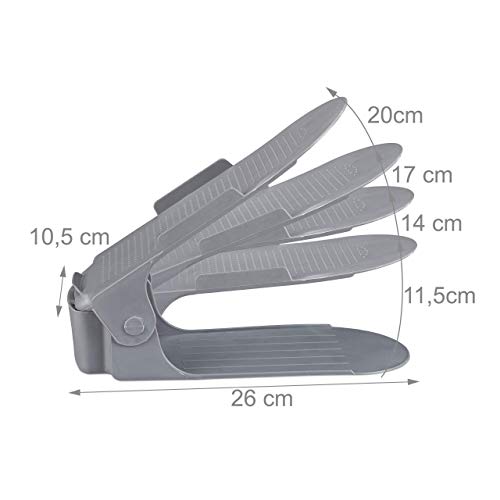 Relaxdays Portascarpe Regolabile, Set da 8, Organizer per Scarpe, Supporto Antiscivolo, per Scarpiere, Grigio Scuro, 20 x 10,5 x 26 cm
