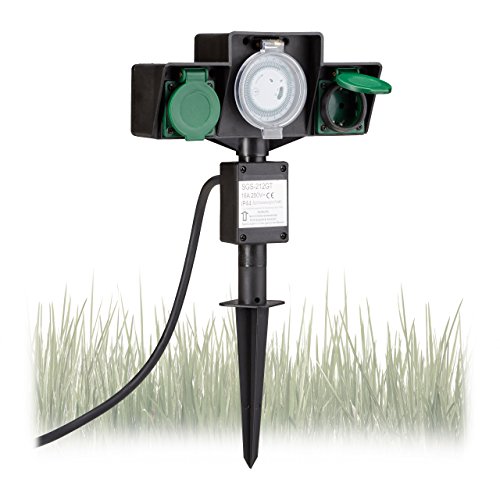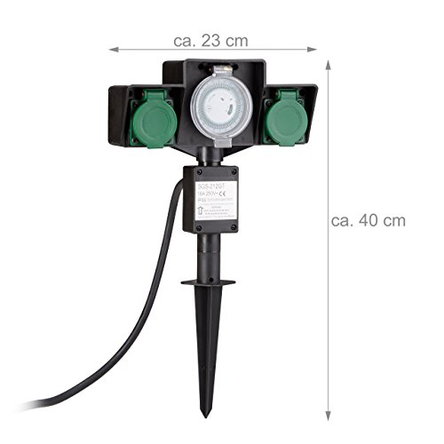 Relaxdays Presa Elettrica da Giardino con 2 Attacchi e Puntale
