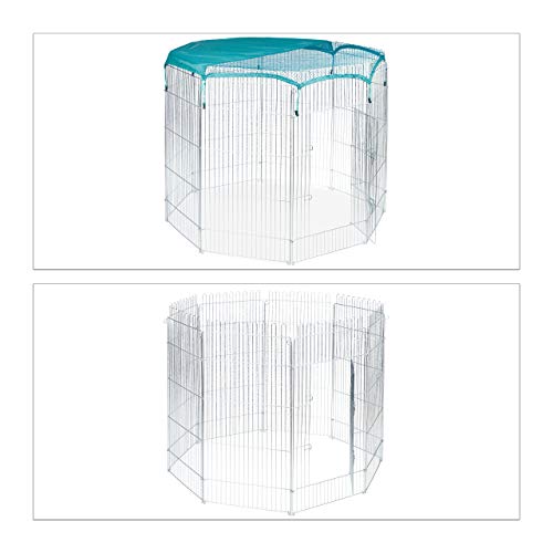 Relaxdays Recinto per Animali, Pieghevole, con Tetto, Conigli, Porcellini d'India, Esterni, HLP 122,5x160x160, Argento