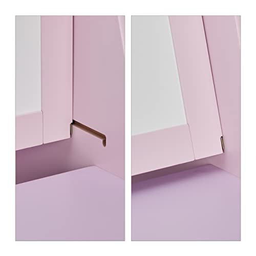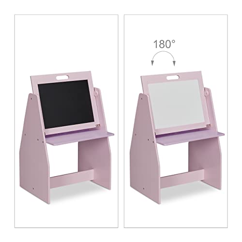 Relaxdays Scaffale per Bambini, con Lavagna, Doppio Scomparto e Sgabello, Postazione per Colorare, HLP 84x52x45 cm, Legno, Rosa, Turchese, Giallo, Viola, Set da 2 pz