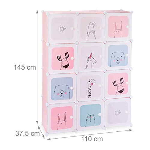 Relaxdays Scaffale Componibile per Cameretta, Motivi Divertenti, Plastica DIY Armadio con Ante HLP 145x110x37,5 cm, Rosa, PP, ABS, Metallo, 145 x 110 x 37,5 cm